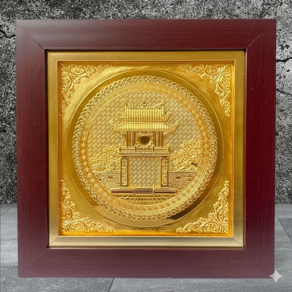 Chế tác tranh quà tặng Khuê Văn Các bằng đồng dát vàng