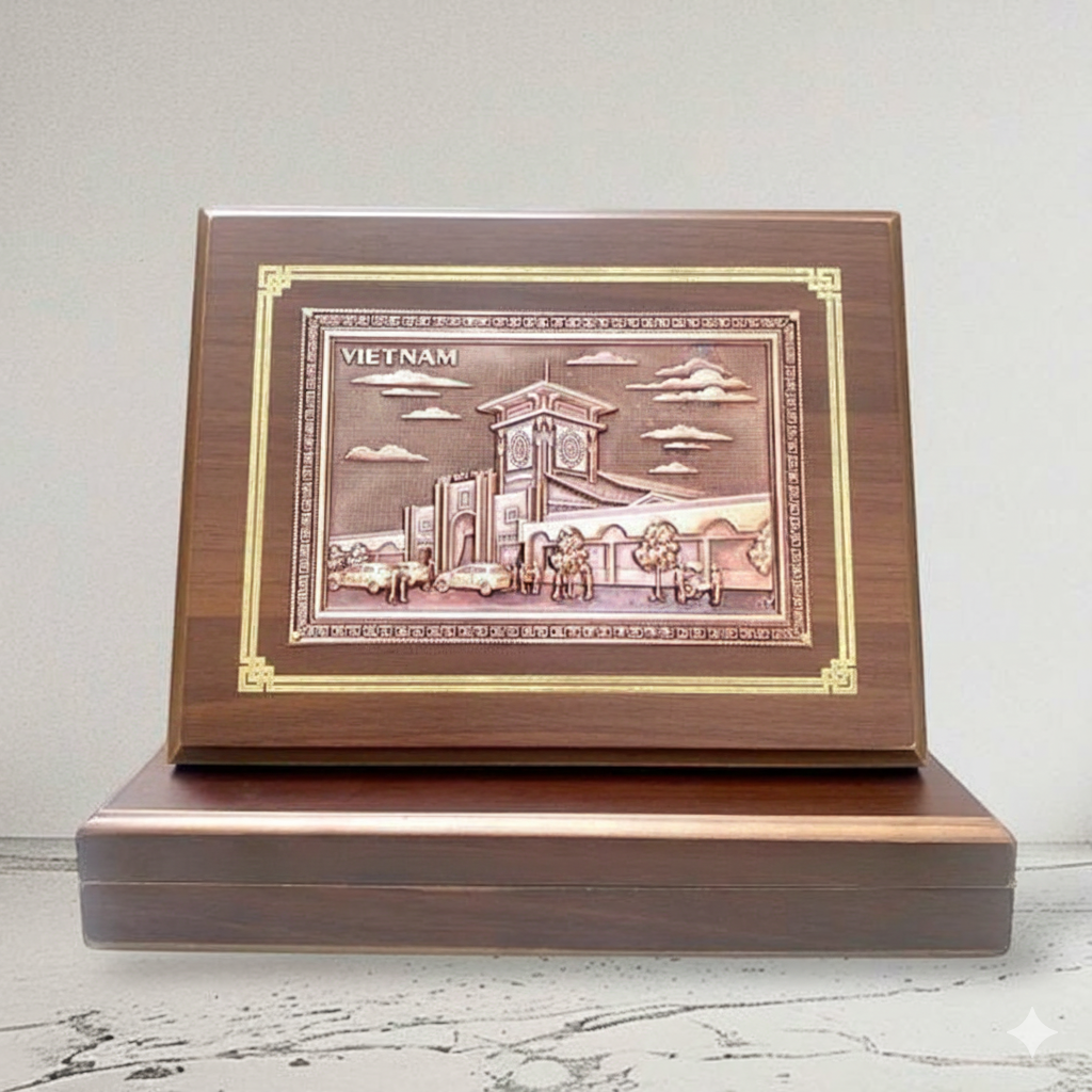 Tranh hộp Chợ Bến Thành đồng đỏ