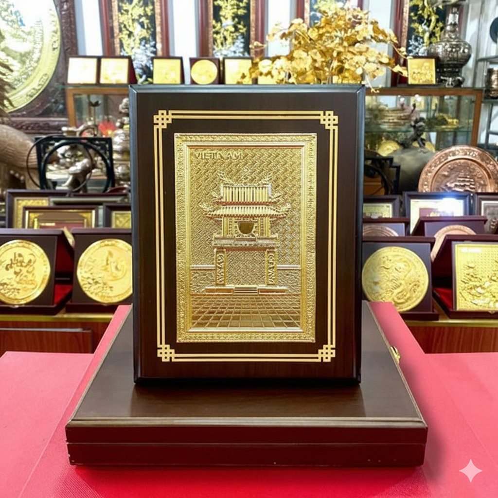 Chế tác tranh quà tặng Khuê Văn Các bằng đồng dát vàng