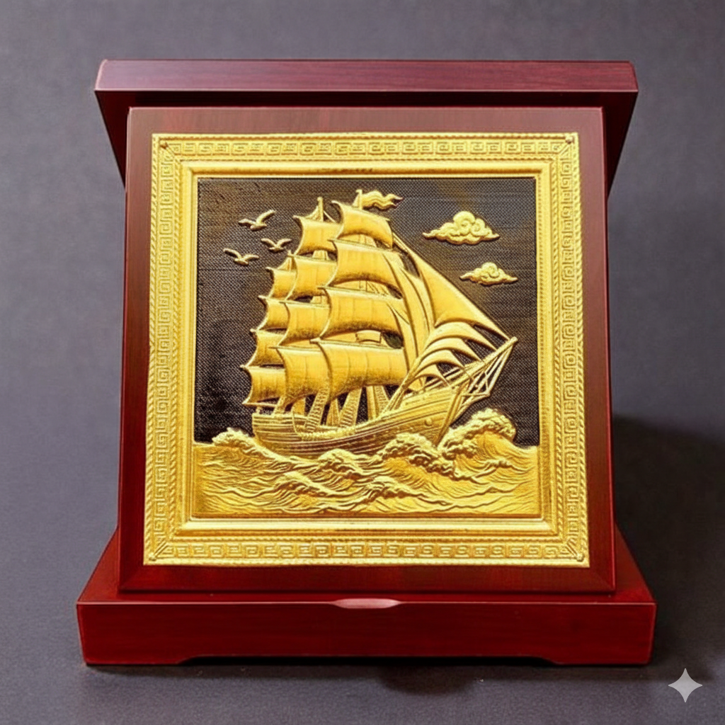 Tranh hộp Thuận buồm xuôi gió dát vàng 18cm