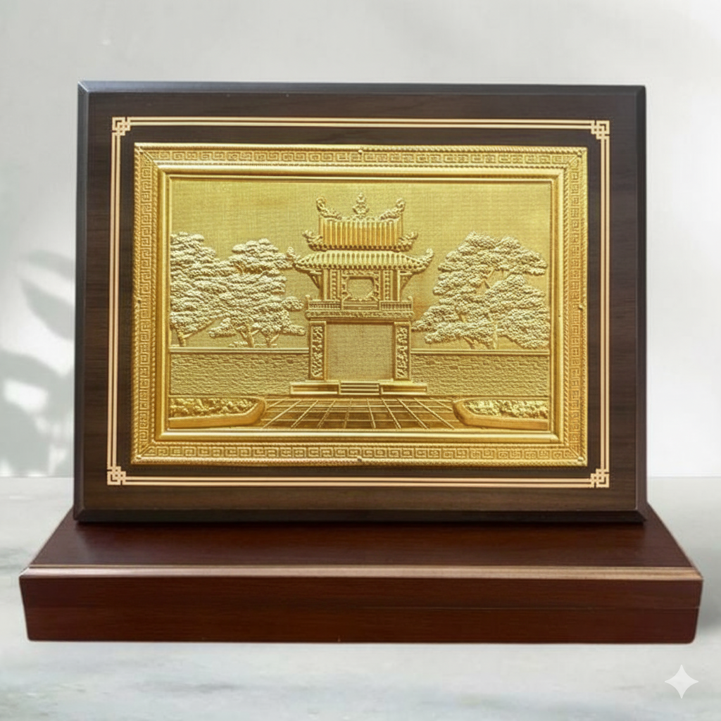 Chế tác tranh quà tặng Khuê Văn Các bằng đồng mạ vàng