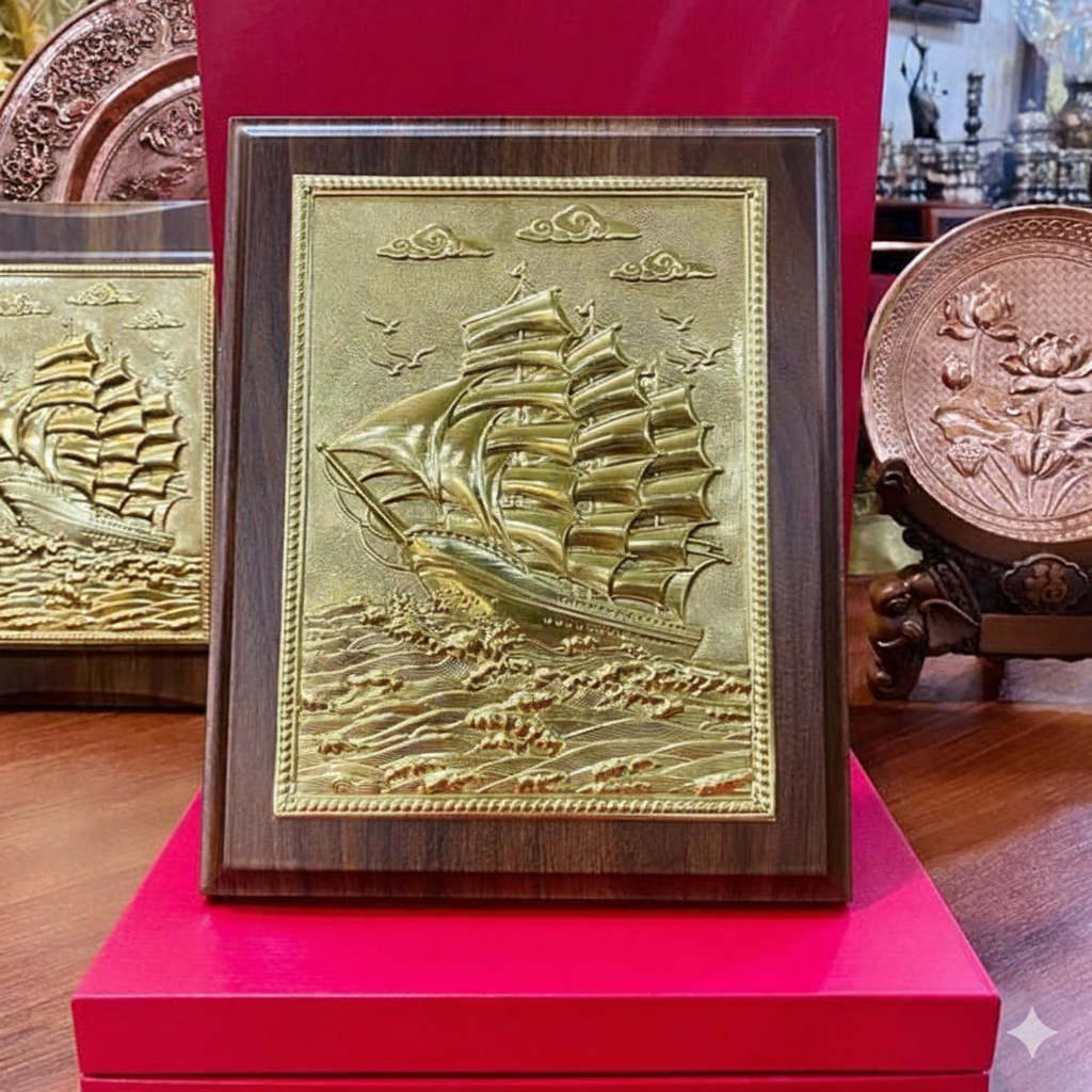 Tranh Quà Tặng Thuận Buồm Xuôi Gió Bằng Đồng vàng KT 20*25cm