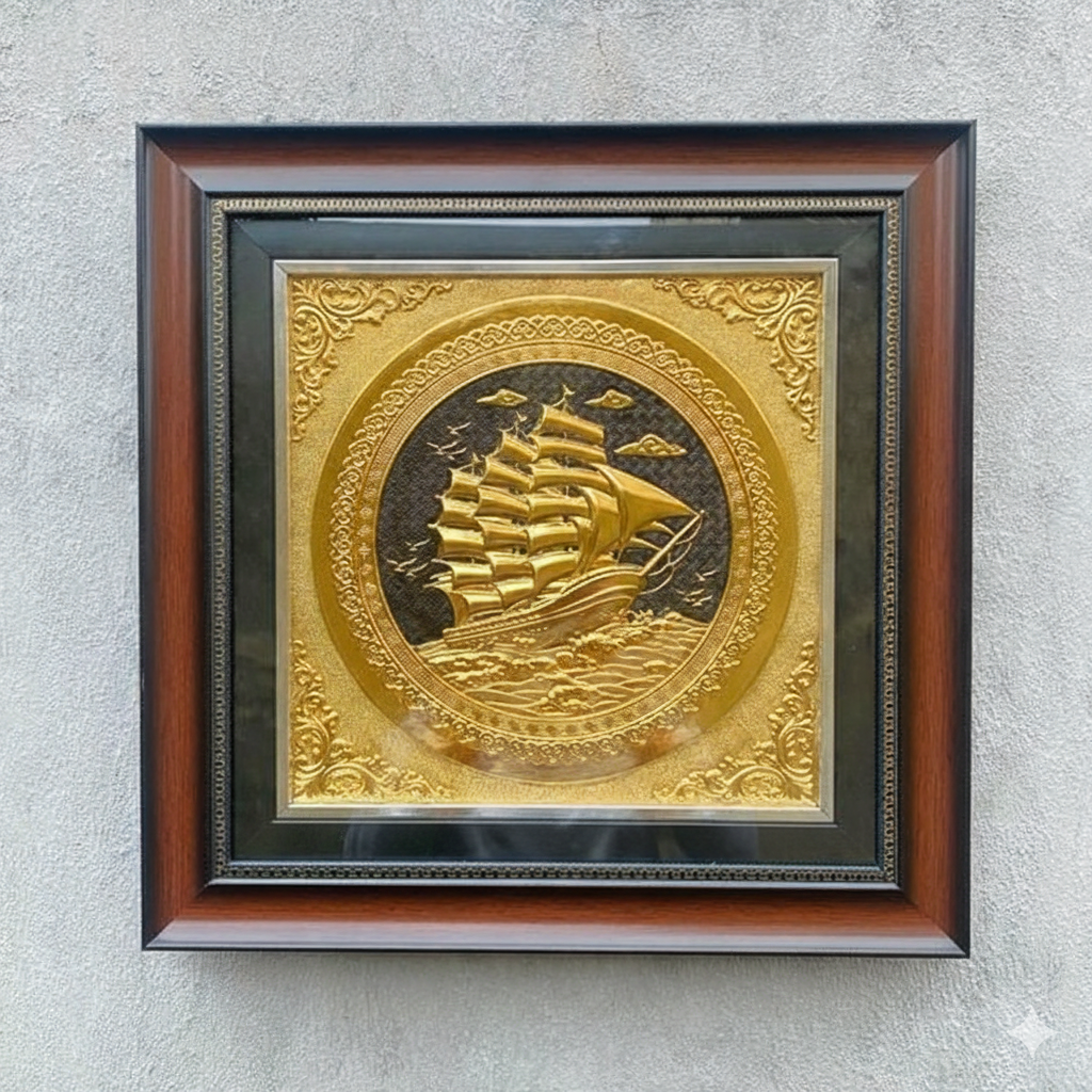 Tranh Thuận Buồm Xuôi Gió Bằng Đồng Dát Vàng KT 42*42cm